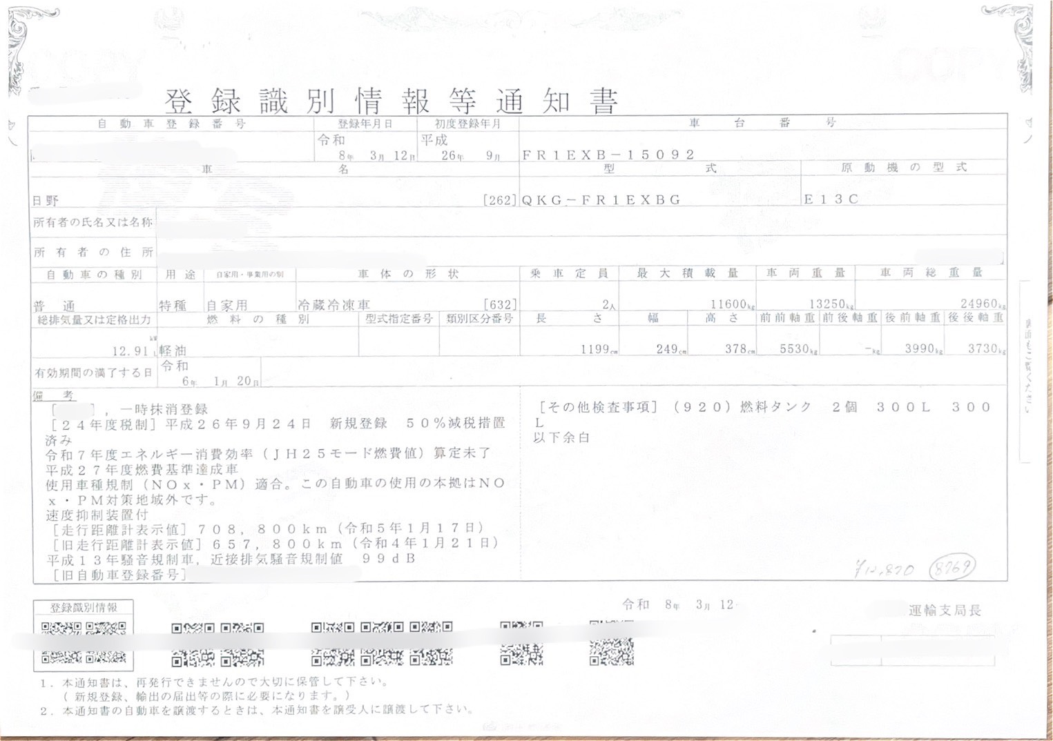 商品No.3軸冷蔵冷凍車1132