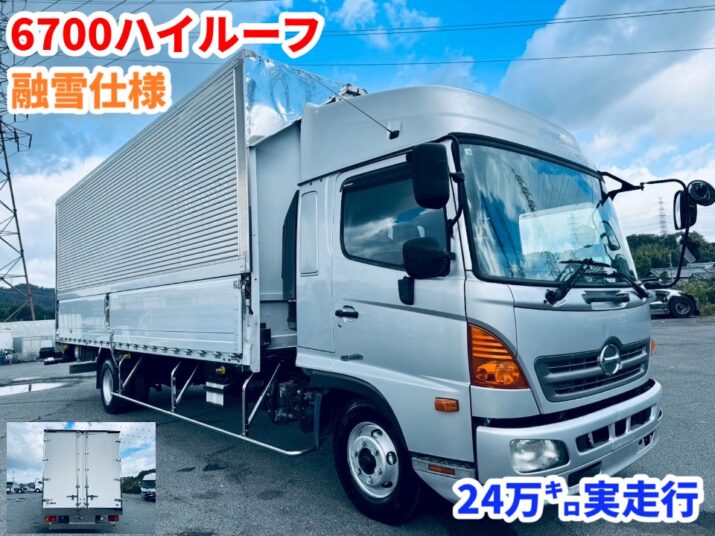 低走行★6.7mボディーハイルーフ4tウイング車★融雪仕様造りボディー