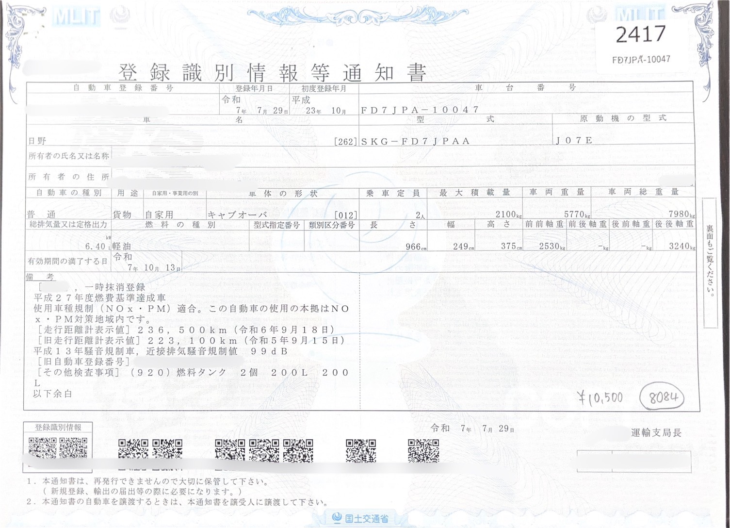 10500円