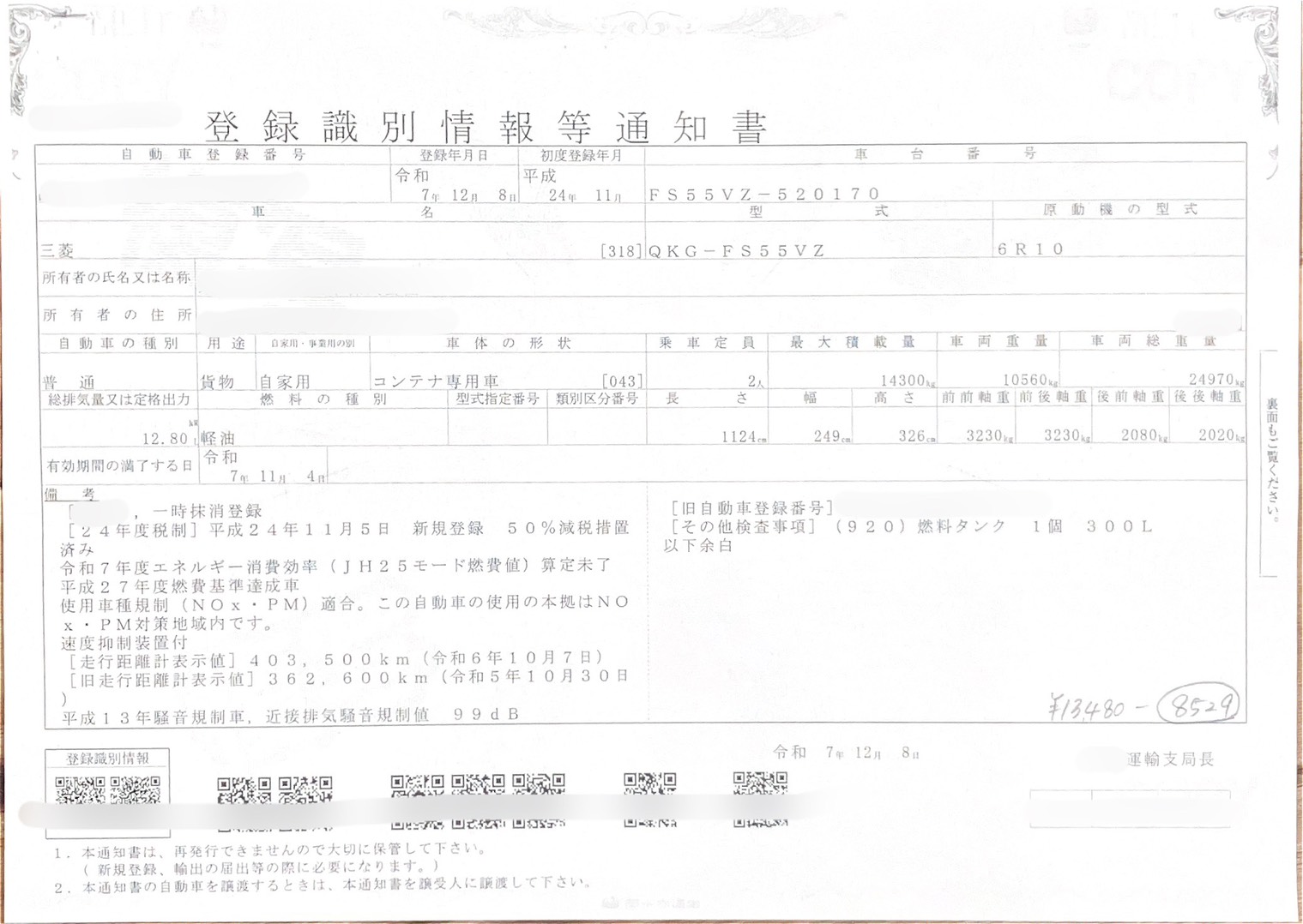 13300kg予定