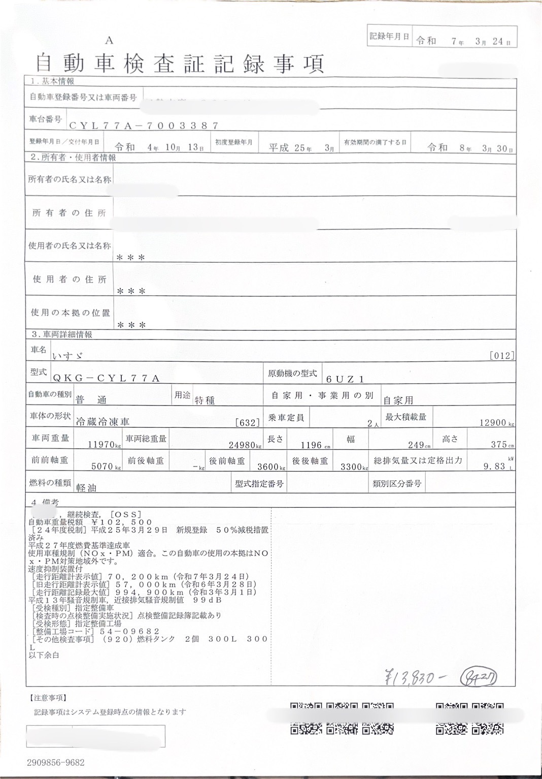 13830円
