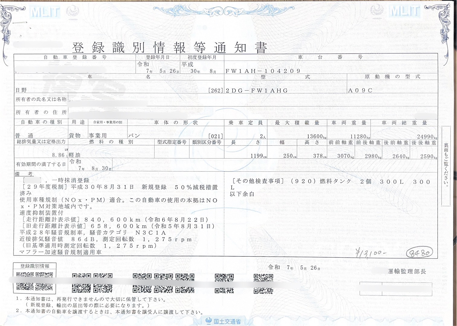 R6年6月821,027km時リコールによるエンジン交換歴あり。交換後129,178km