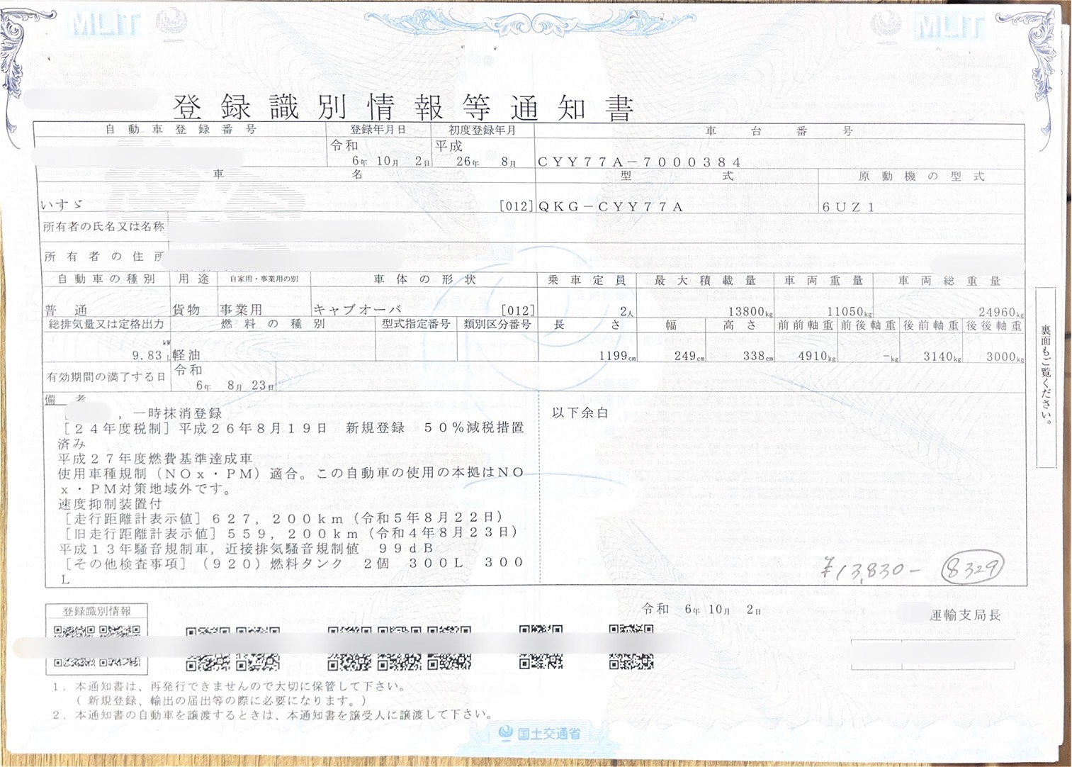 13830円
