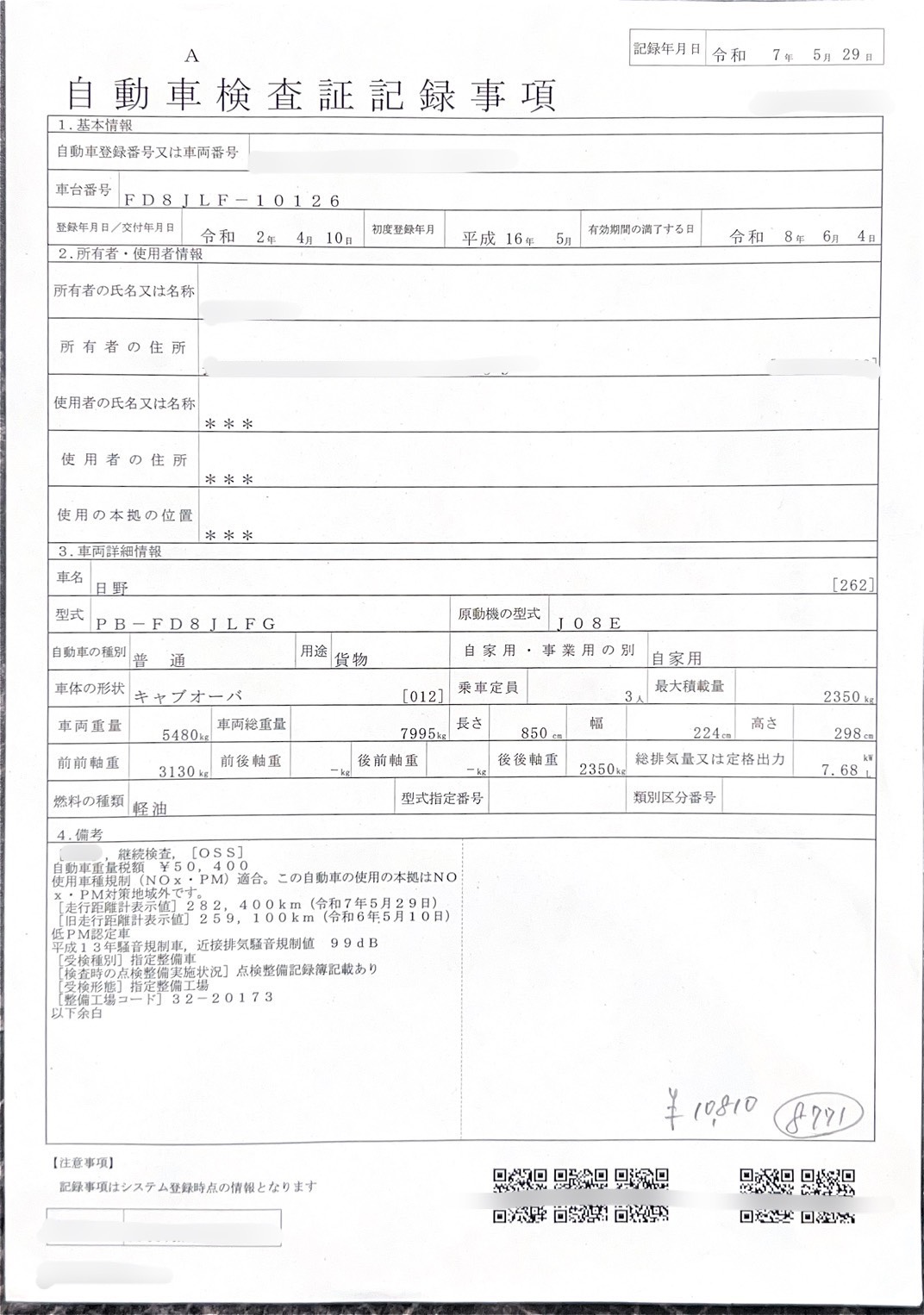 10810円