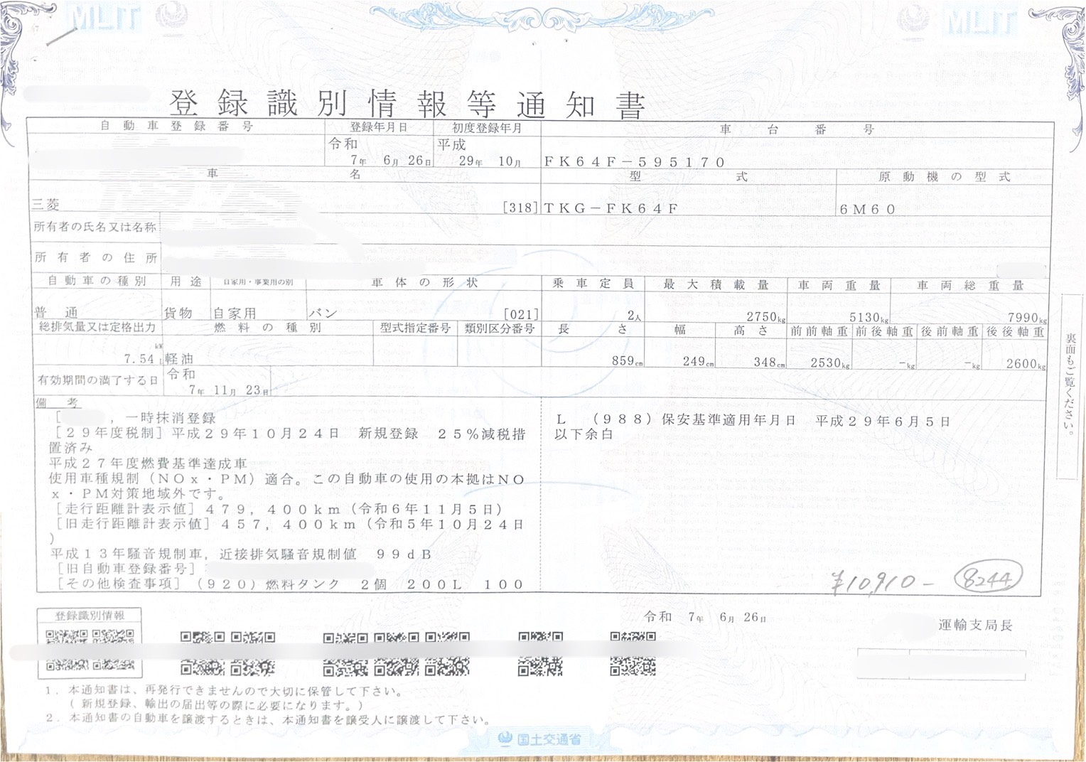 10910円