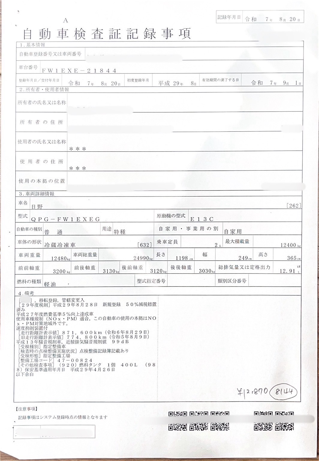 | 商品No. | 4軸冷蔵冷凍車1119 |